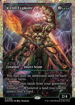 I had dismissed this card as worse than other green three‑drops, but it has performed better than I expected. One benefit that didn’t materialize until the Final Fantasy set was how effectively it enabled landfall strategies, functioning like a mini‑Primeval Titan.