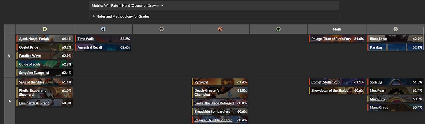 For comparison, the original Tarkir: Dragonstorm article and how ratings shifted: